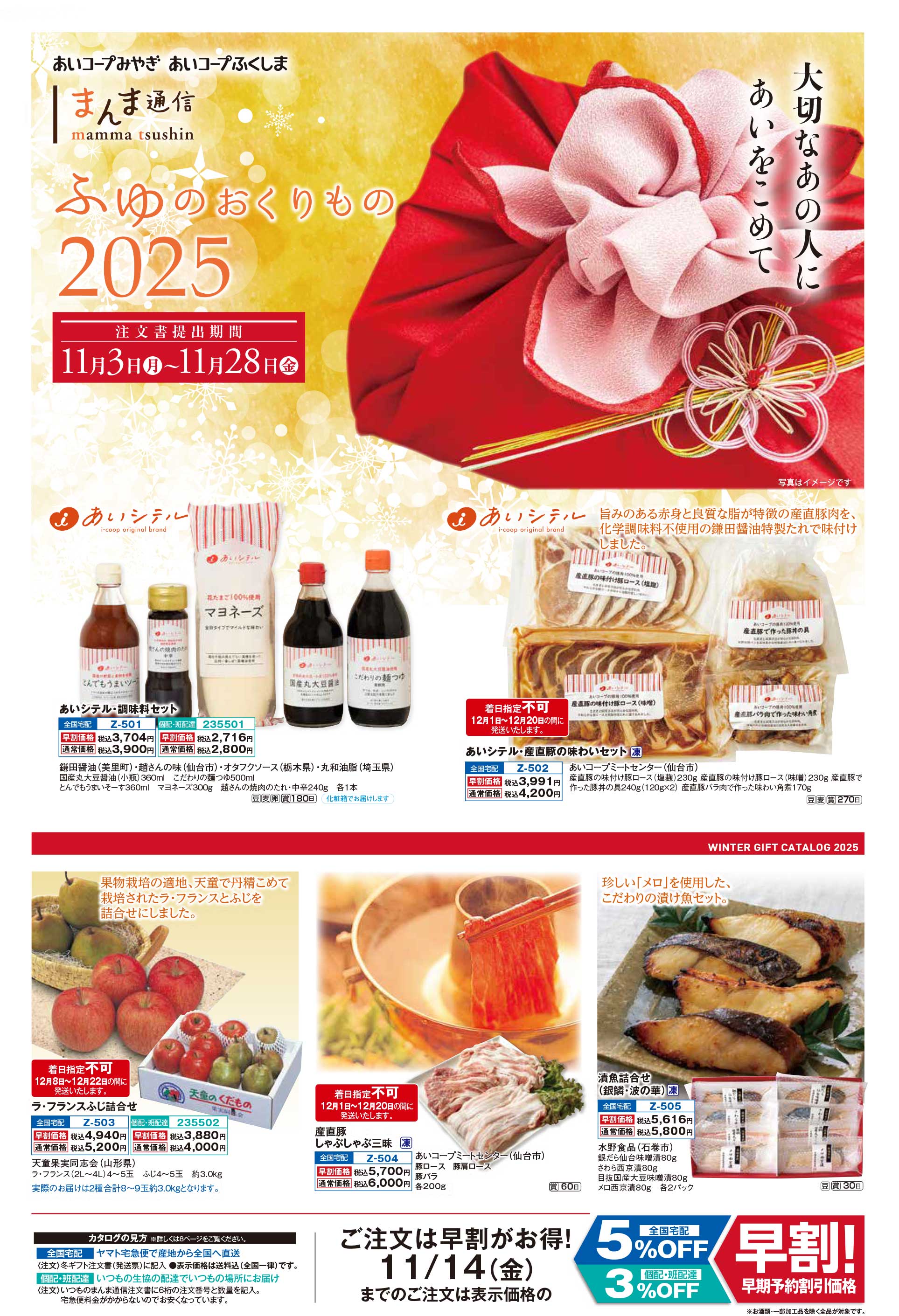 ・注文書の提出日によって、お届け日指定ができる期間が異なります。カタログ8ページをご覧ください。