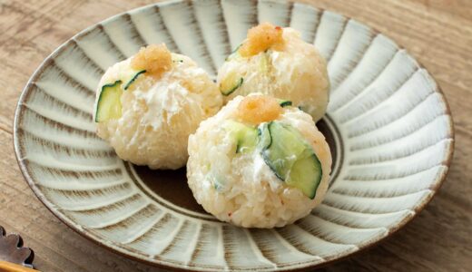 2.ボウルに明太子(30g)、粗熱を取ったご飯、小口切りにしたきゅうりを入れ混ぜ合わる。最後にクリームチーズを入れさっくりと混ぜる。