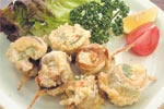3.卵1/2個を溶きほぐし、冷水1/3カップを足し、小麦粉1/2カップを混ぜて衣を作り、2.につけて、170℃の油で揚げる。