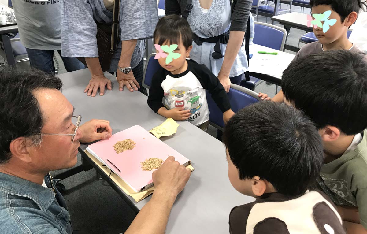 「種もみ」の選別や消毒のお話や体験は初めて知ることも多く、大人も子どもも真剣に聞いていました。