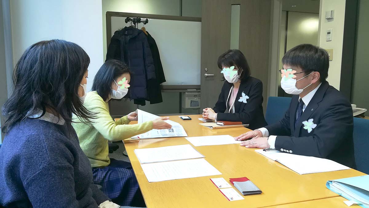 当日は理事長・理事2名・組合員とその家族4名の計7名が宮城県庁を訪れ、知事に代わり出席いただいた遠藤副知事に趣旨を説明したのち、手紙の束と要望書を手渡しました。